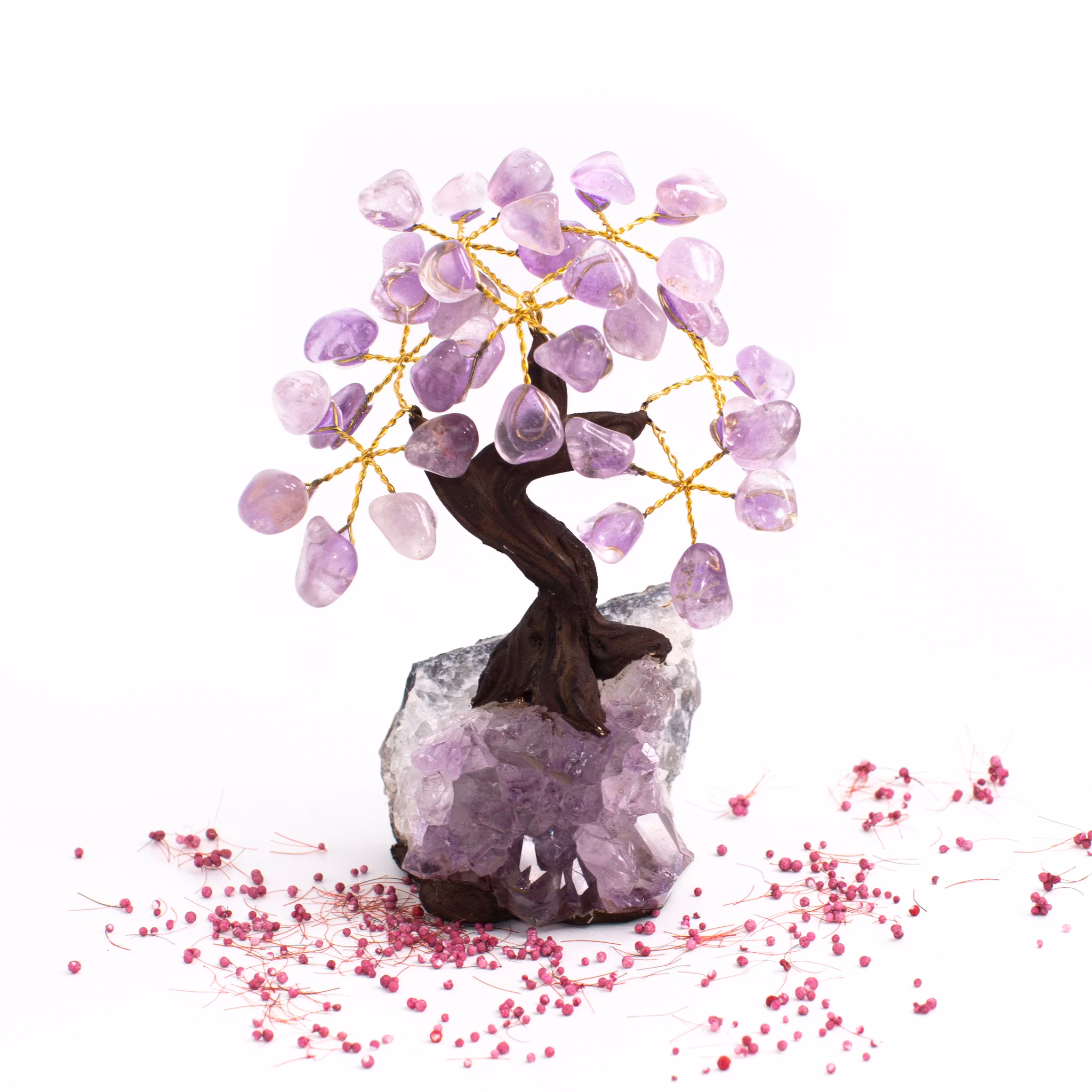 Egenskaper: Ametisten är en kraftfull kvarts med hög spirituell vibration. Den är mycket god för att blockera geopatisk stress och negativa energier i sin omgivning. Den är förmånligt för sinnet som den lugnar och stimulerar. Den stöttar med centrering, balans, fokus och kontroll. En god sten som främjar intuitionen och mediala förmågor. Ametisten används även för beslutstagande och sätta beslut och insikter i praktiken.