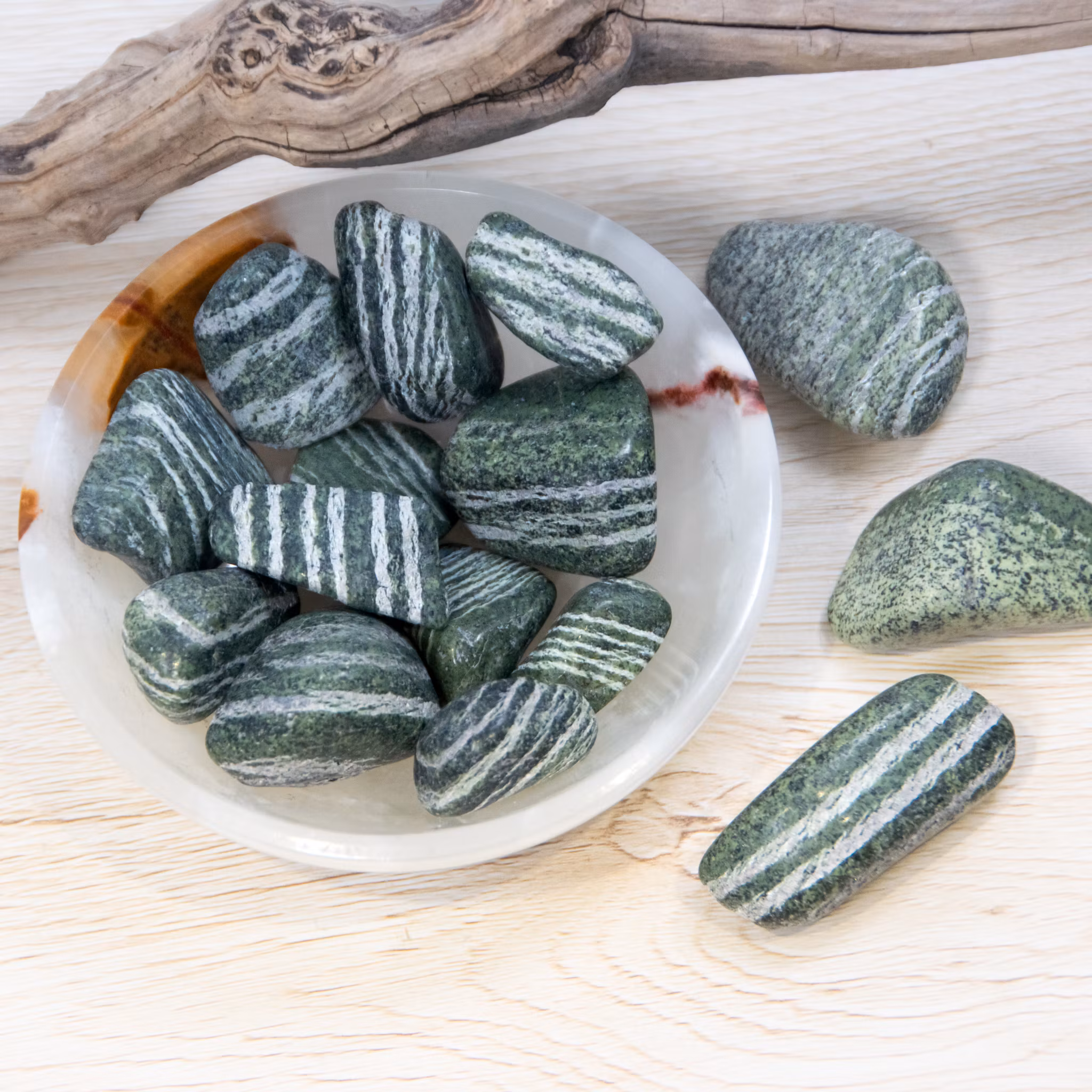 Krysotil; En shamansk sten. Här har du ditt kraftdjur som väntar på att visa sig för dig så du kan lära dig av den. Visar var du söker att kontrollera andra och stöttar att släppa taget medan du styr mot dina mål.