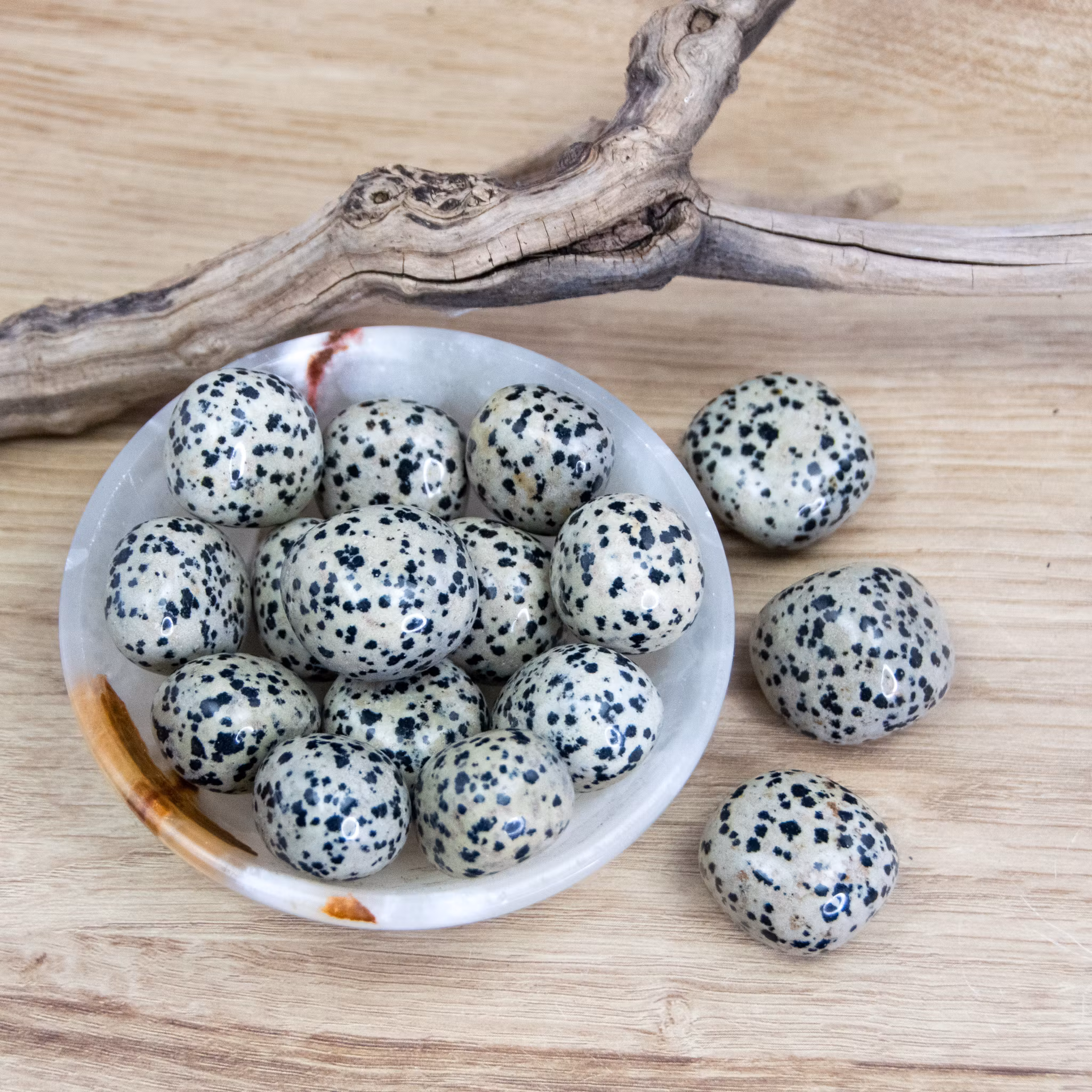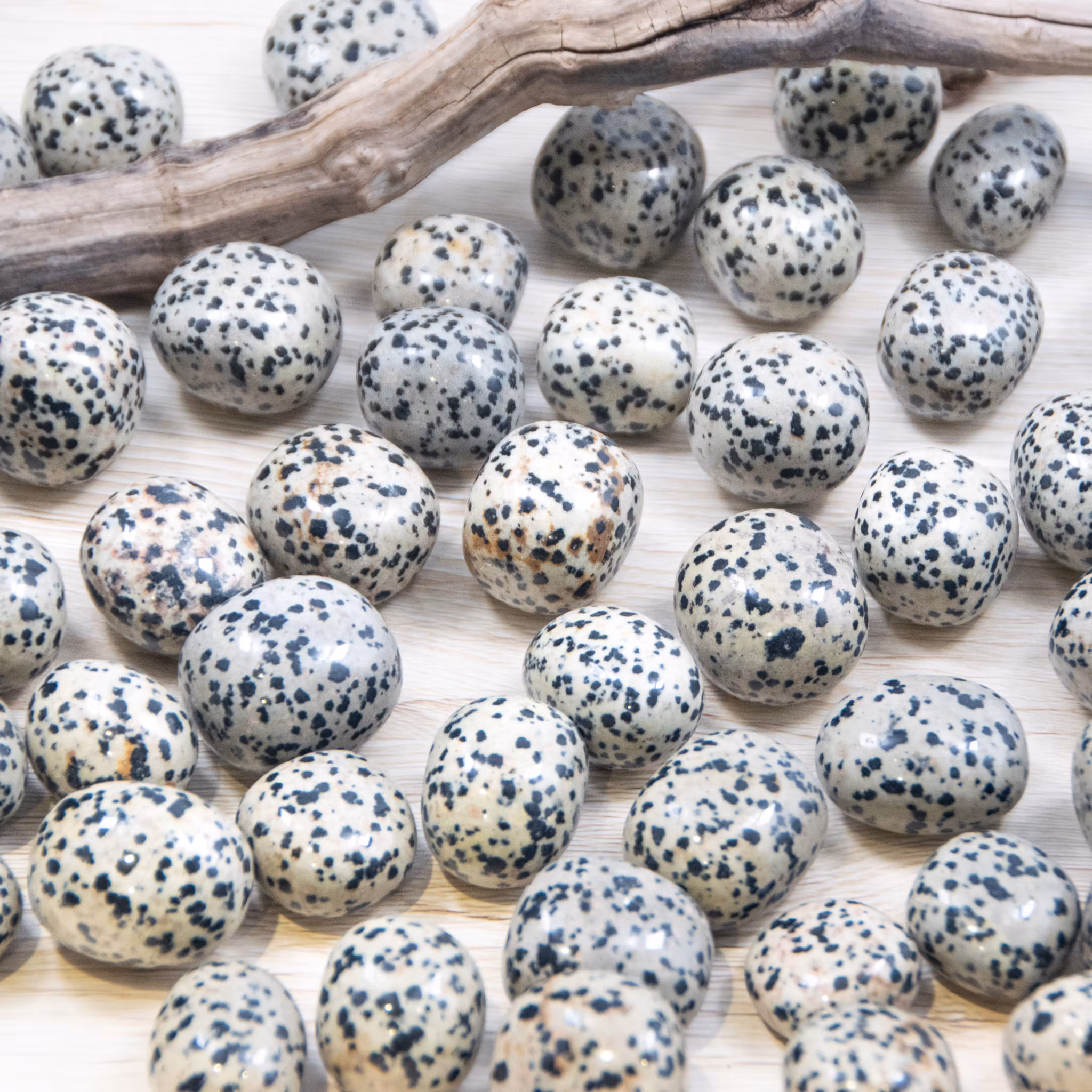 Dalmatin Jaspis; en sten för glädje och lekfullhet. Länkad till vårt "inre barn" uppmuntrar den till uttryck av glädje och skratt.
