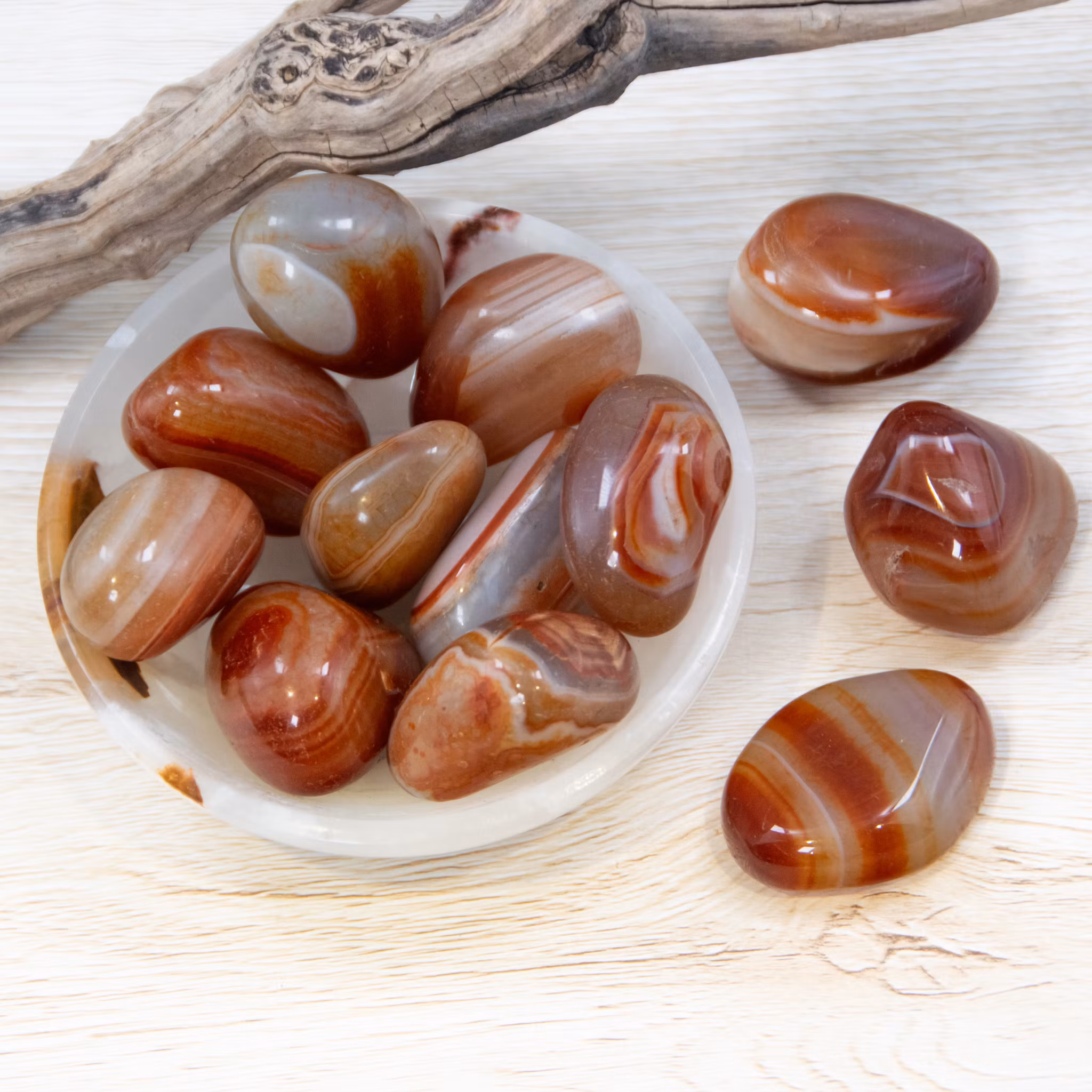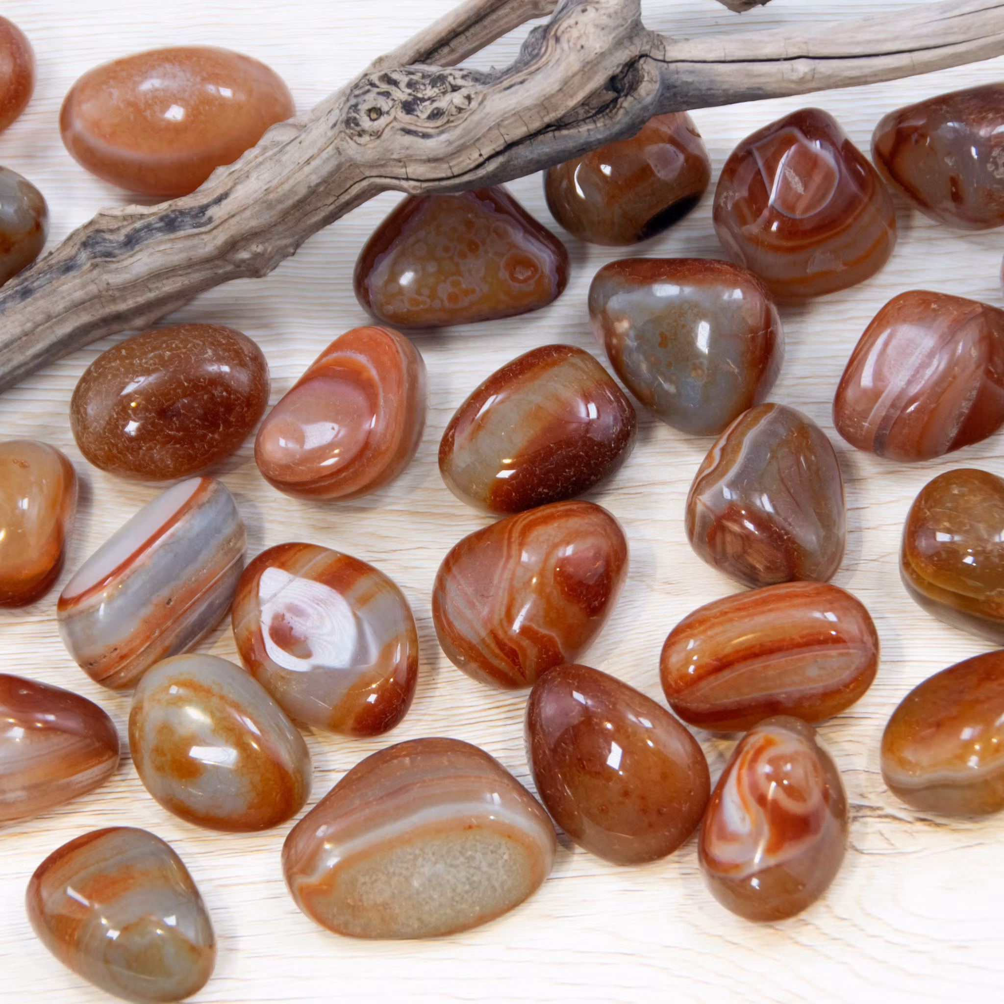 Karneol är känd för att väcka lust för livet, kraft och kreativitet. Ifall du vill stärka ditt självförtroende kan karneol hjälpa dig hitta din inre styrka. Den hjälper dig även få kreativitet och boostar din motivation. Karneol sägs stimulera kärlek och passion och ge mod till den som bär den.